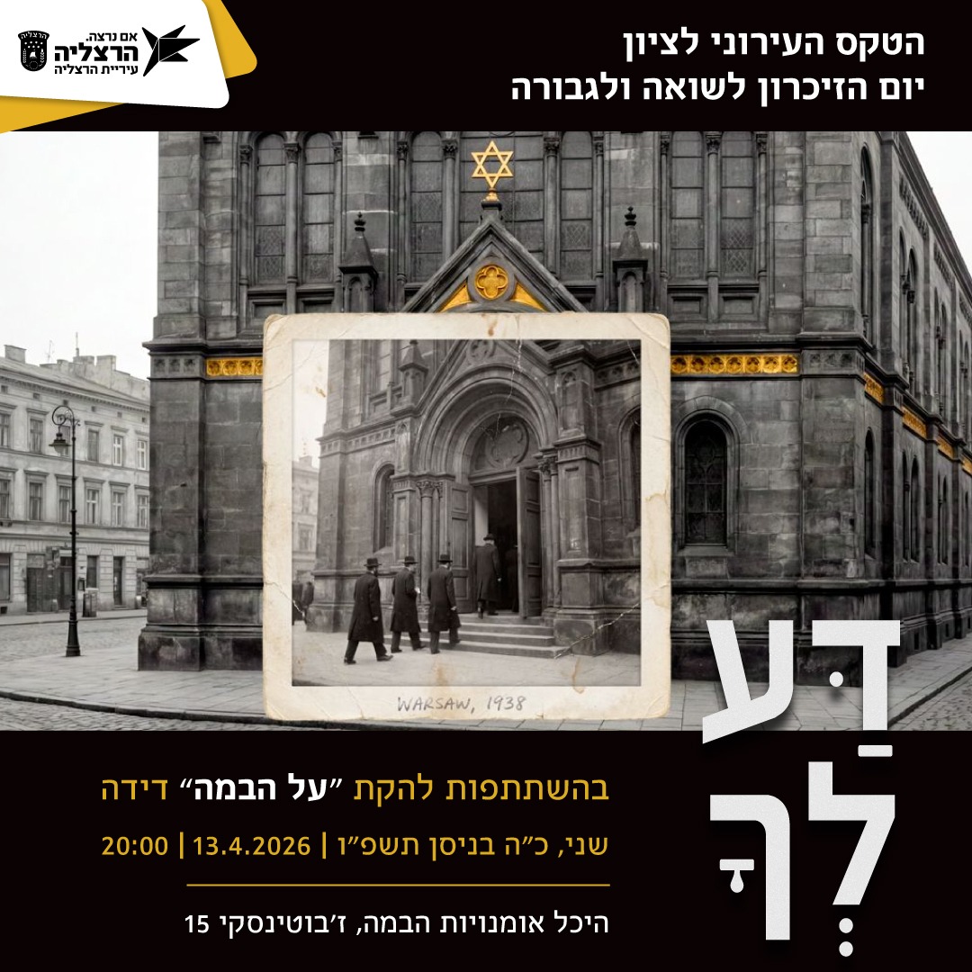 ערב יום הזיכרון לשואה ולגבורה, 13.4.25 | בשעה 20:00 | היכל אומנויות הבמה הרצליה | פתוח לקהל הרחב, בהזמנת מקומות מראש
